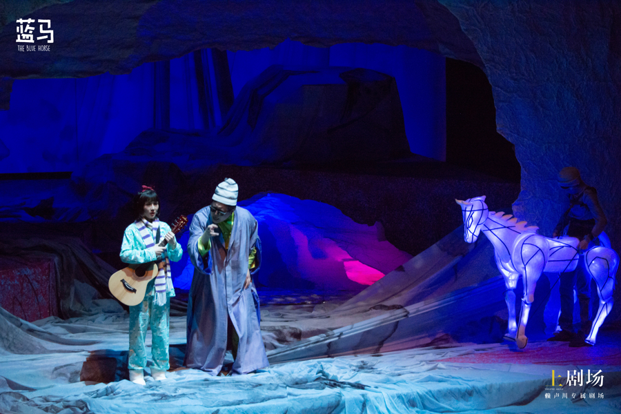 此次《蓝马》首登会昌,是他献给故乡的特殊礼物,该剧源于他为女儿即兴编织的晚安故事,这个故事一讲就是三十年,从女儿到外孙、外孙女,一夜又一夜,经三代人传述愈发丰满,最终被搬上舞台。