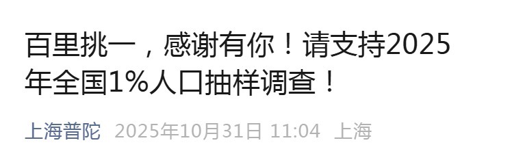此外,为了充分反映全市和分区人口结构状况,经国家统计局同意,上海的调查样本量,在国家方案的基础上,扩大至3%,涉及调查对象约75万人。